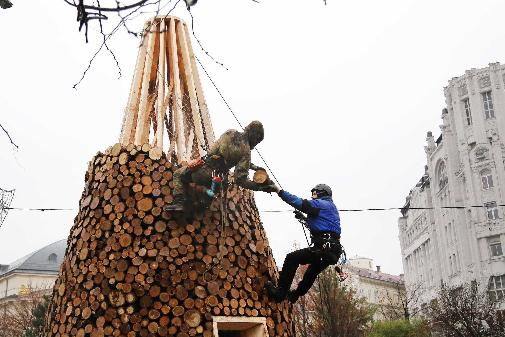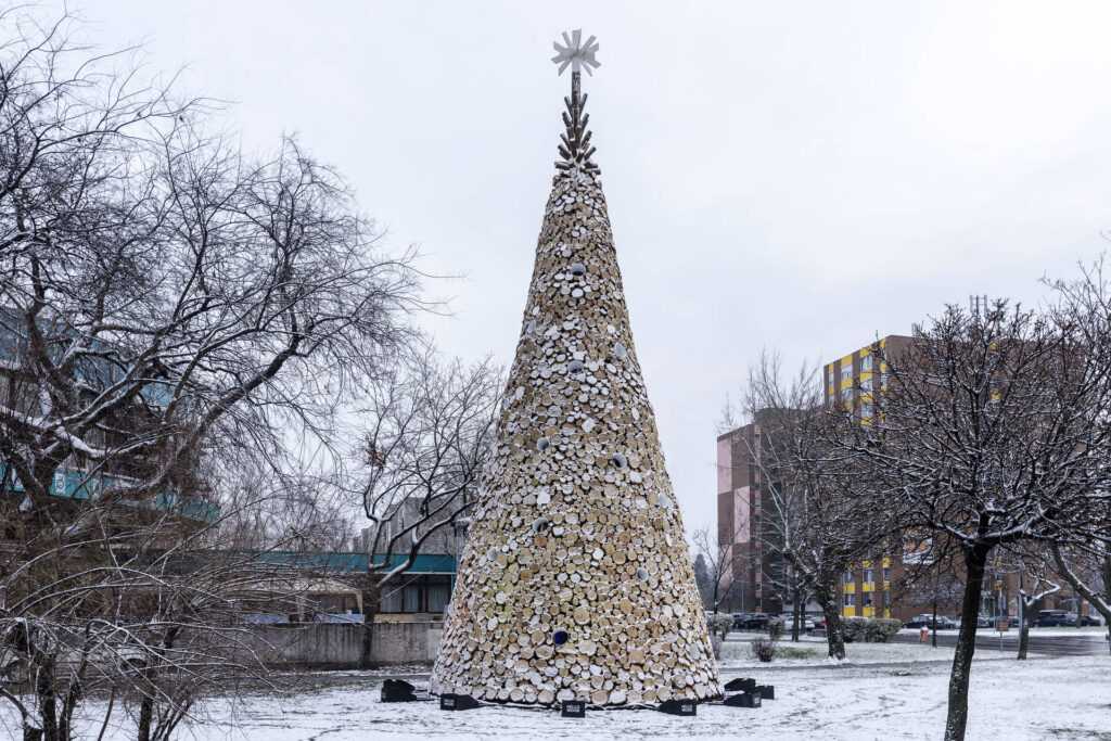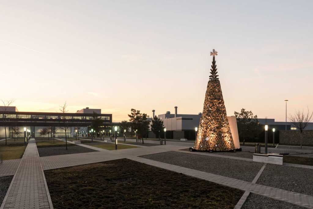 Made up of 5000 pieces of firewood, our first Charity Tree installation was assembled in Budapest’s Erzsébet Square in 2014. Working closely with Design Terminal and the Hungarian Interchurch Aid, our goal was to build a tree that not only brought people together in celebration of the holiday season, but also drew attention to those less fortunate; when the tree was dismantled in January, we donated the firewood to local families in need. The installation, which included a 4-metre-long indoor staircase, also offered a stunning view of the city from its scattered lookout points which resembled Christmas ornaments. In 2017, we built more Charity Trees in Hungary than ever before. Two 16-metre-tall installations weighing 40 tons each were erected in Óbuda and Kőbánya and a slightly smaller-scale tree was assembled in Kecskemét. Staying true to the original concept, our Charity Trees provided more than 60 families around the country with firewood in early 2018.