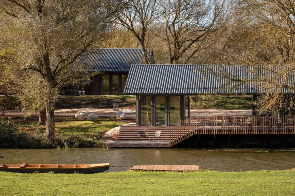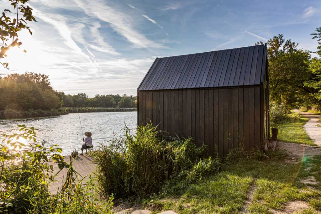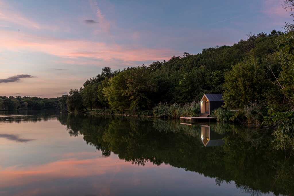 Far from the hustle and bustle of thy city yet within reachable proximity to Budapest, nestled in the embrace of nature by a serene fishing lake, lies the latest project by Hello Wood. In 2023 an extensive program plan for a fishing paradise was realized here in the picturesque setting of Göböljárás.