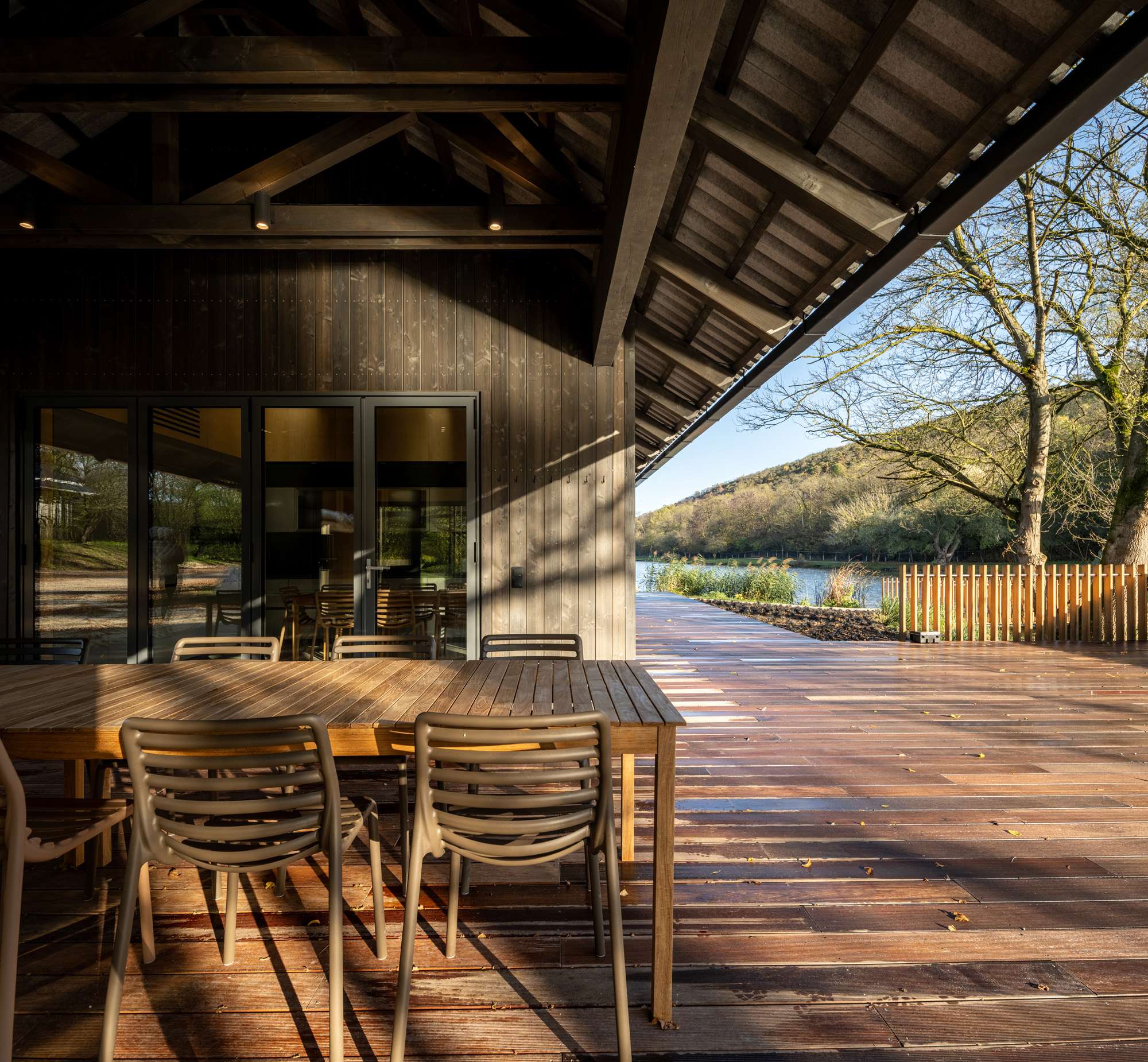 The 100-hectare fishing centre welcomes visitors with exceptional architectural and landscape architectural solutions. The cabins, piers, outdoor furniture, and the central community and service buildings of the fishing lakes Diana and Zoltán, designed and constructed by Hello Wood, harmoniously blend into the natural environment, almost becoming one with it.