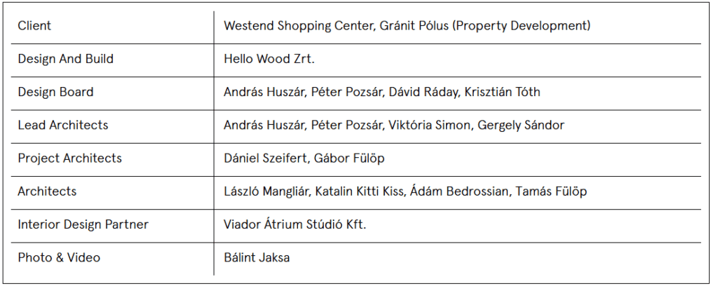 For Westend, a popular shopping center in the heart of Budapest, it is key to innovate and adapt by understanding the changing requirements and desires of customers. They commissioned us, humbly calling ourselves the pioneers of wooden architecture in Hungary, to implement the largest development of Westend since its opening – the revamp of the food court.