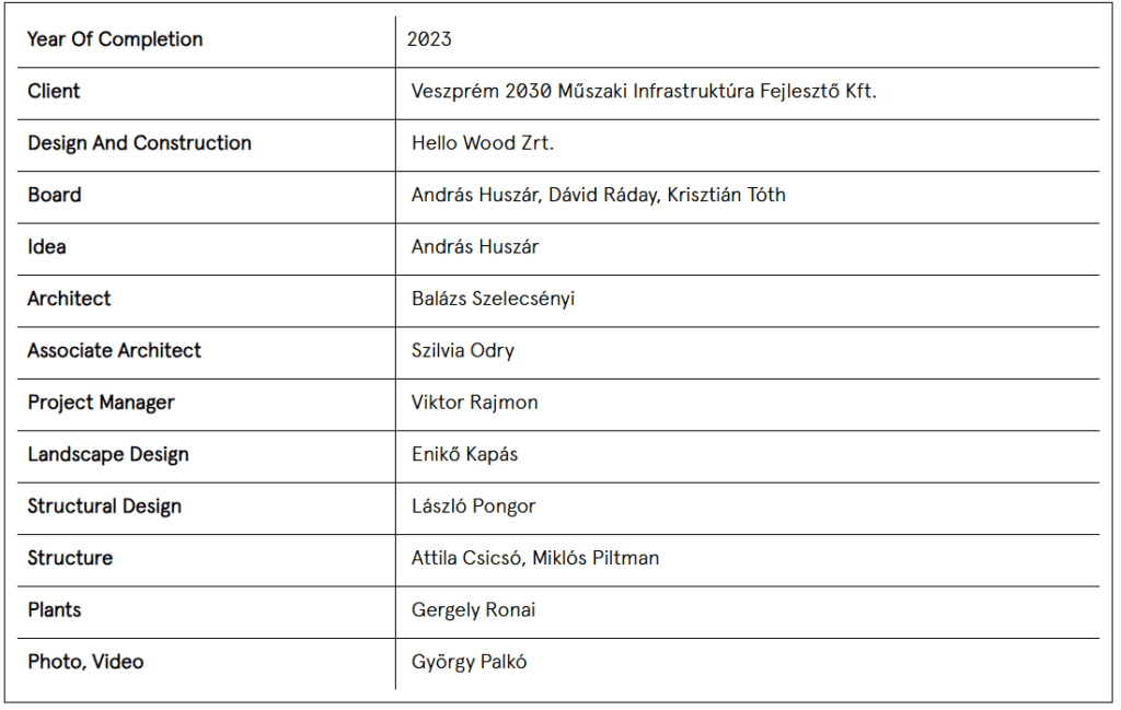 The Garden of Communities is an artwork that celebrates the rich culture of the Veszprém-Balaton region. The pavilion is a symbolic monument to the cooperation of the 116 municipalities participating in the Veszprém-Balaton 2023 European Capital of Culture program.