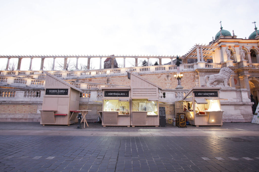 The kiosks are up for rent, make sure to contact us for further details and rental prices via hellowood@hellowood.eu. Note that price inquiries should include the number of pavilions for rent (minimum amount: 10 pieces of the 2*2*2,9m units), rental period, deadline of assembly and dismantling.