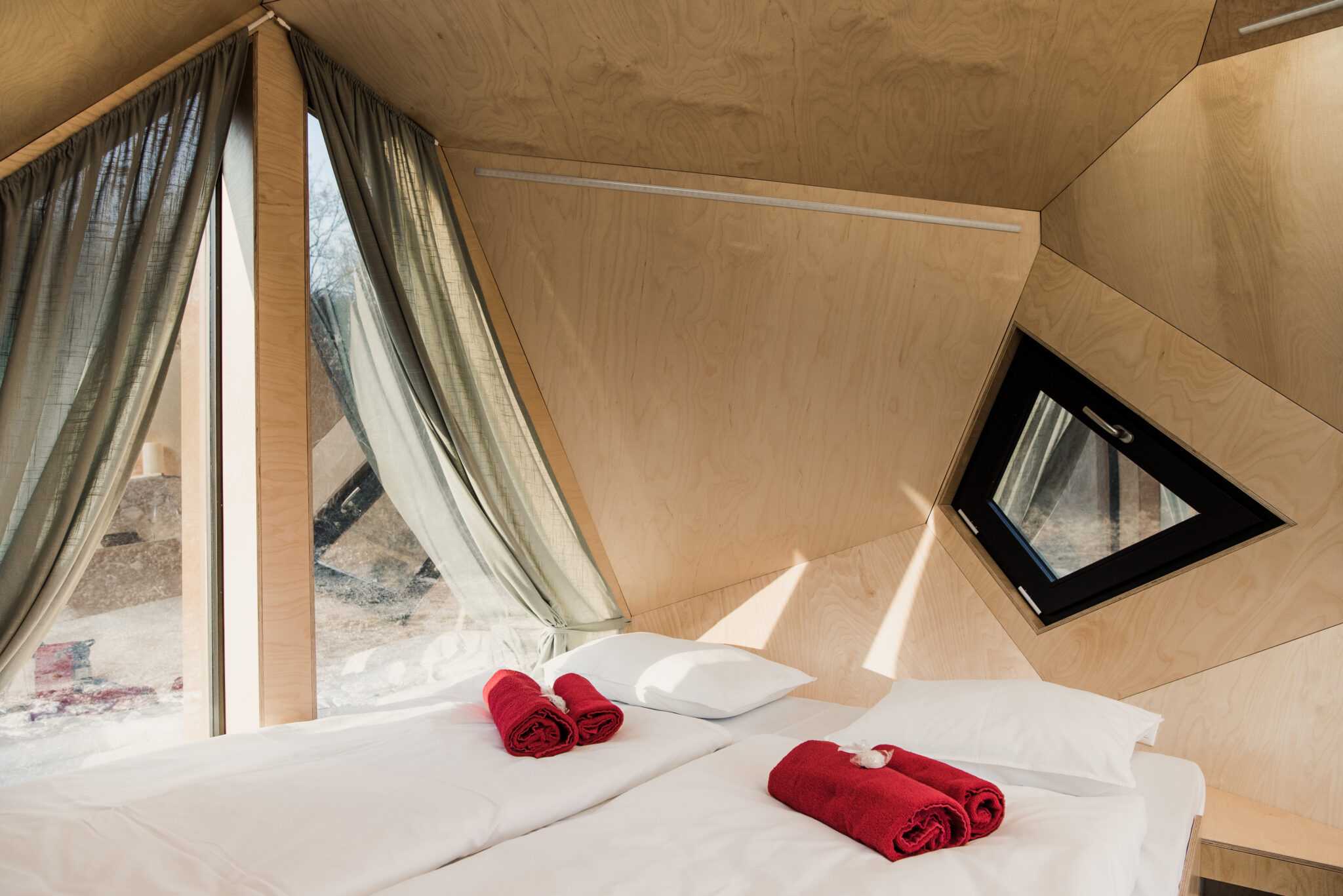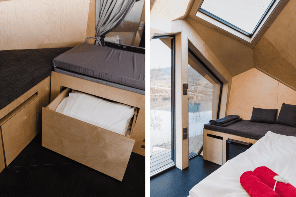 Our compact cabins will never feel small or limiting. Do you want to pack everything neatly inside the built-in drawers so it doesn’t get in the way? No problem. Do you want to close the bed during the day? Done. Do you want to open the windows to let more sun in? You already know.