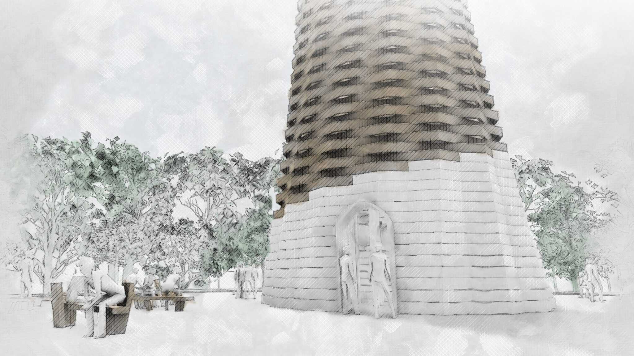 Lookout tower concept designed for the Municipality of Kőbánya. The project’s supposed construction place was Óhegy park in Kőbánya.