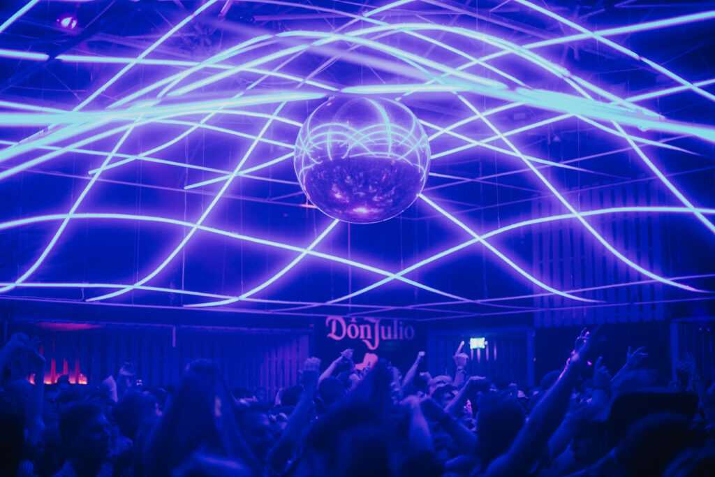 Covering more than 500 square meters and accommodating around 600 people, The Club offers a deliberately intimate scale within the vastness of Sziget. Its modular timber frame, combined with recyclable acoustic panels, was designed for both durability and circularity, ensuring that the entire structure can be fully disassembled and reused in future projects. The interior is dominated by a spectacular ceiling installation: more than 400 meters of LED strips programmed to respond in real time to the beat of the music, transforming the venue into a pulsating light sculpture above the crowd.